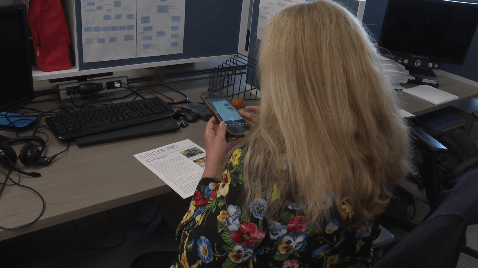 Sheri Albers uses a mobile app to scan a flyer. Credit: Nicole Aponte