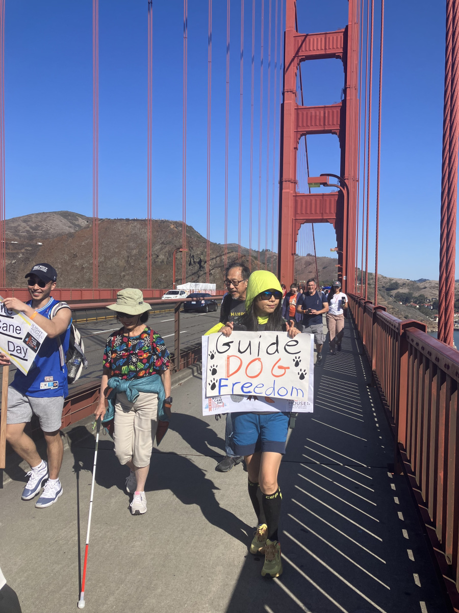 On Saturday, October 5, over 200 marchers and volunteers traveled from all over the San Francisco Bay Area to the Marin Vista Point to participate in LightHouse’s 2nd Annual White Cane Day March across the Golden Gate Bridge. Blind, low vision, deafblind and sighted marchers alike, all joined together to celebrate the independence and resilience of the BVI community, spread awareness, and bridge the gap between the sighted and blind communities. Marchers held signs with messages of empowerment like, “Blind and Proud,” “Have Cane? Will Travel!” and “Guide Dog Freedom” as cars crossing alongside the marchers honked and cheered in support.